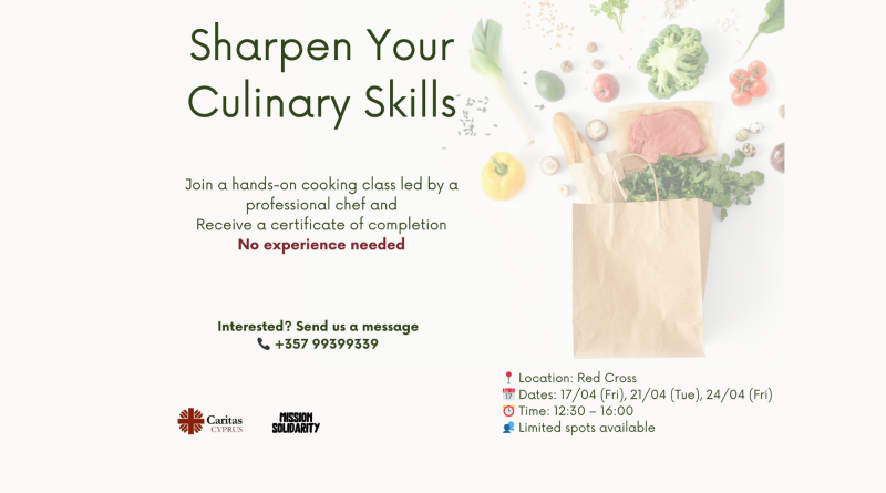 Caritas Cyprus and Mission Solidarity are coming together to offer a hands-on cooking class led by a professional chef.